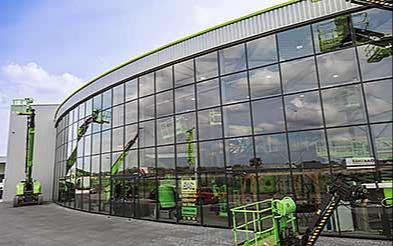 Voor BAC Hoogwerkers te Waddinxveen hebben wij een ruime en representatieve showroom van maar liefst ongeveer 2500m² gerealiseerd, direct langs de A12. Dankzij de gunstige zichtlocatie is gekozen voor een opvallende, rondvormige gevel met grote glaspartijen die volledig op de snelweg gericht is. Hierdoor komt niet alleen veel daglicht binnen, maar presenteert de showroom zich ook maximaal aan voorbijrijdend verkeer. Op een gemiddelde werkdag passeren tussen de 50.000 en 100.000 automobilisten deze locatie, wat zorgt voor een enorme zichtbaarheid. Het gebouw combineert functionaliteit met een moderne uitstraling die perfect past bij de professionaliteit van BAC Hoogwerkers. Zo vormt de showroom een krachtig visitekaartje voor het bedrijf.